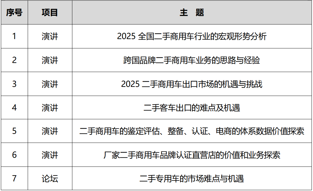 随着我国商用车市场进入存量时代,新车置换业务量的快速增长,推动二手商用车流通、出口及相关的评估、整备、认证、数据化等环节已成为产业发展的新蓝海和增长点。为深入探讨行业发展趋势,破解当前痛点难点,促进整车企业、经销商、二手车商、出口商等产业链各环节的协同发展,推动二手商用车产业迈向科学化、标准化、国际化,特举办本次论坛。