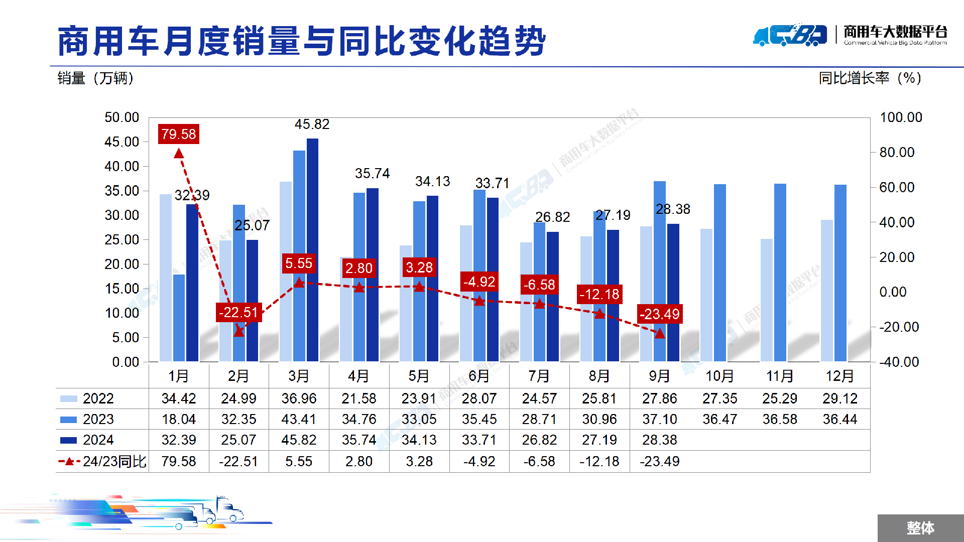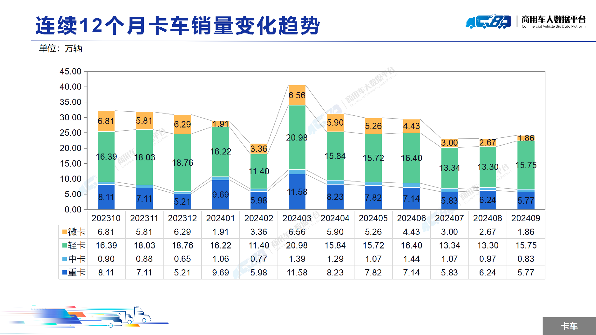 下一篇:数据:2024年9月全国重型卡车销量为5.77万辆,同比下降32.67%;中型卡车销量为0.83万辆,同比下降15.49%