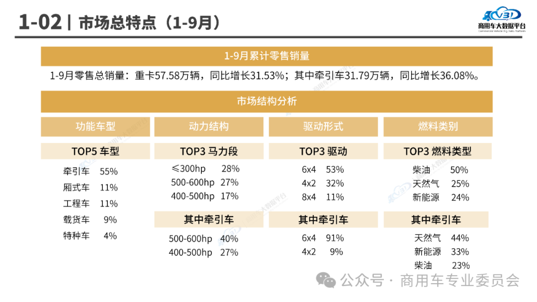 1-9月,重型卡车累计销量根据不同市场结构分析如下: