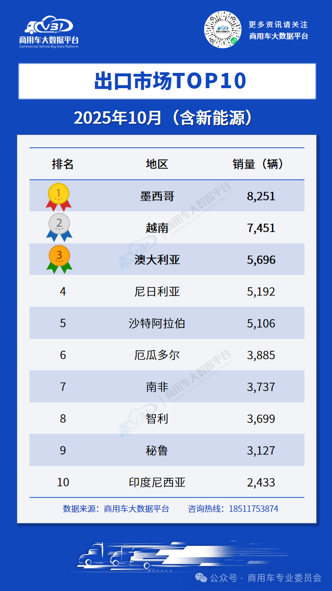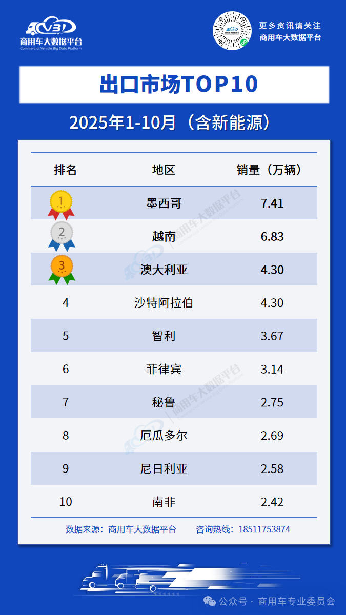 下一篇:数据:2025年1-10月,商用车新车零售销量为255.39万辆,出口销量为92.48万辆